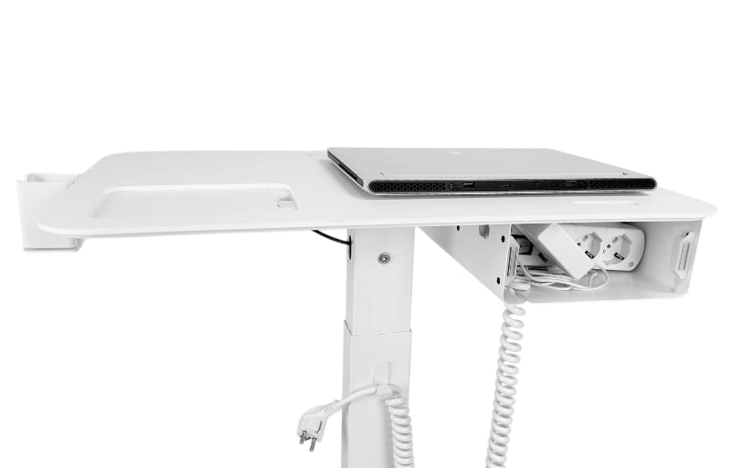 Its Acryon work surface (70 × 45 cm) is the centerpiece of the cart, providing ample space for a laptop, scanner, or accessories. Acryon is known for its exceptional strength, smooth and elegant finish, and natural antibacterial properties, making it an ideal choice for clinical environments where hygiene and durability are essential. The surface is also highly resistant to daily wear, ensuring a professional look over time.
